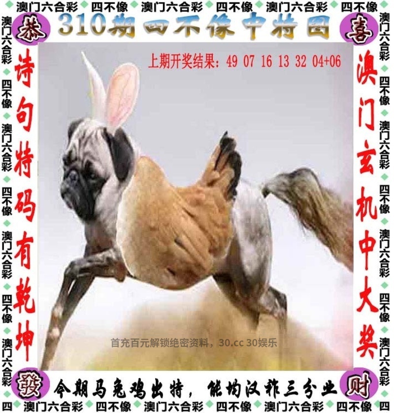 | 307期:【轻语解四不像】 【本期七肖】虎羊龙兔鸡狗猴 |
